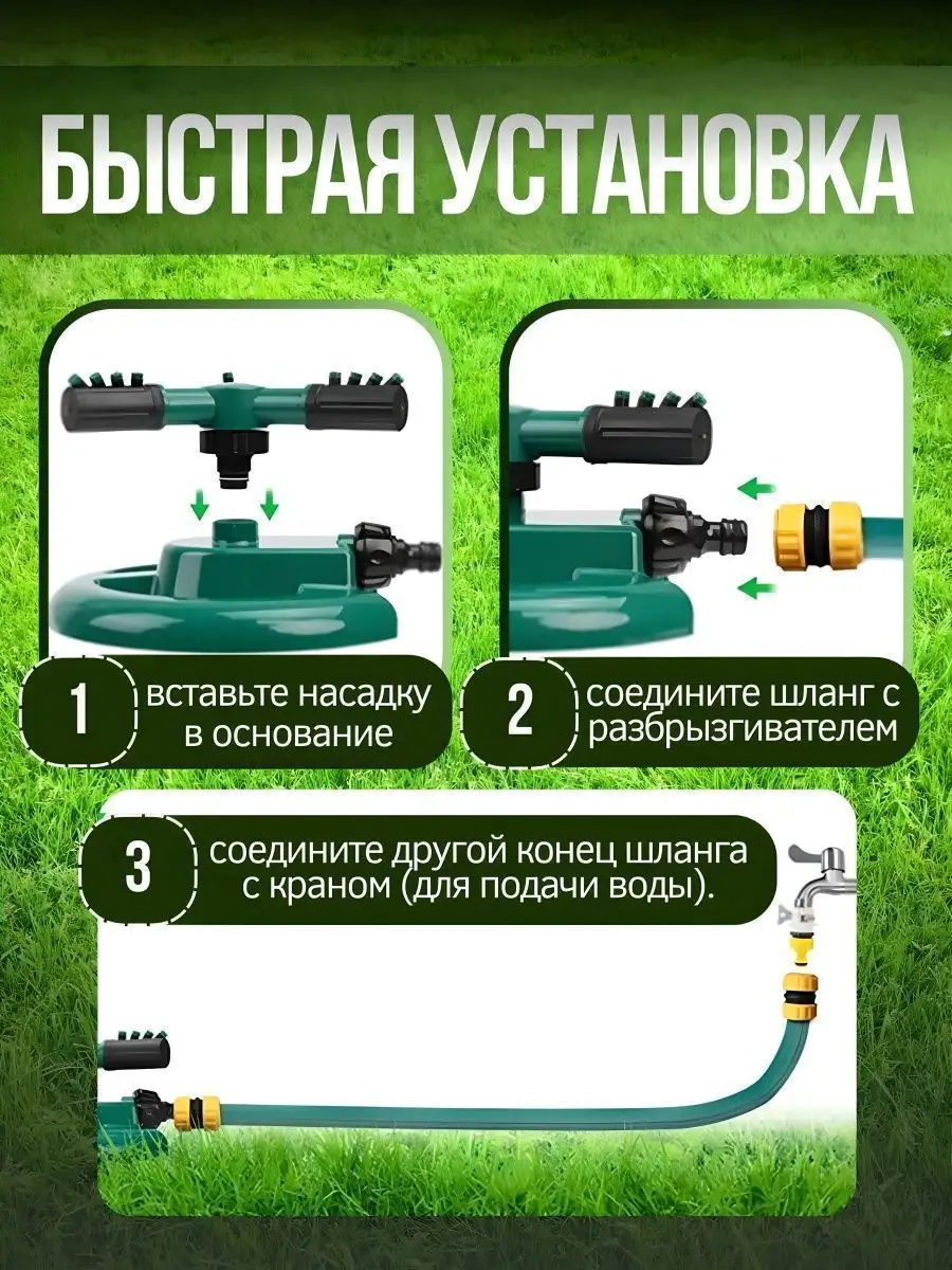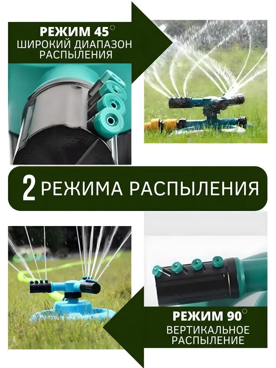 Спринклер вращается на 360 градусов, обеспечивая эффективное разбрызгивание воды. Диаметр распыления составляет от 7 до 12 метров, что делает его идеальным для обработки плодовых кустарников, фруктовых деревьев и рассады в парнике. Этот прочный механизм с наконечником-рассеивателем значительно упрощает уход за вашим садом и экономит ваши силы.